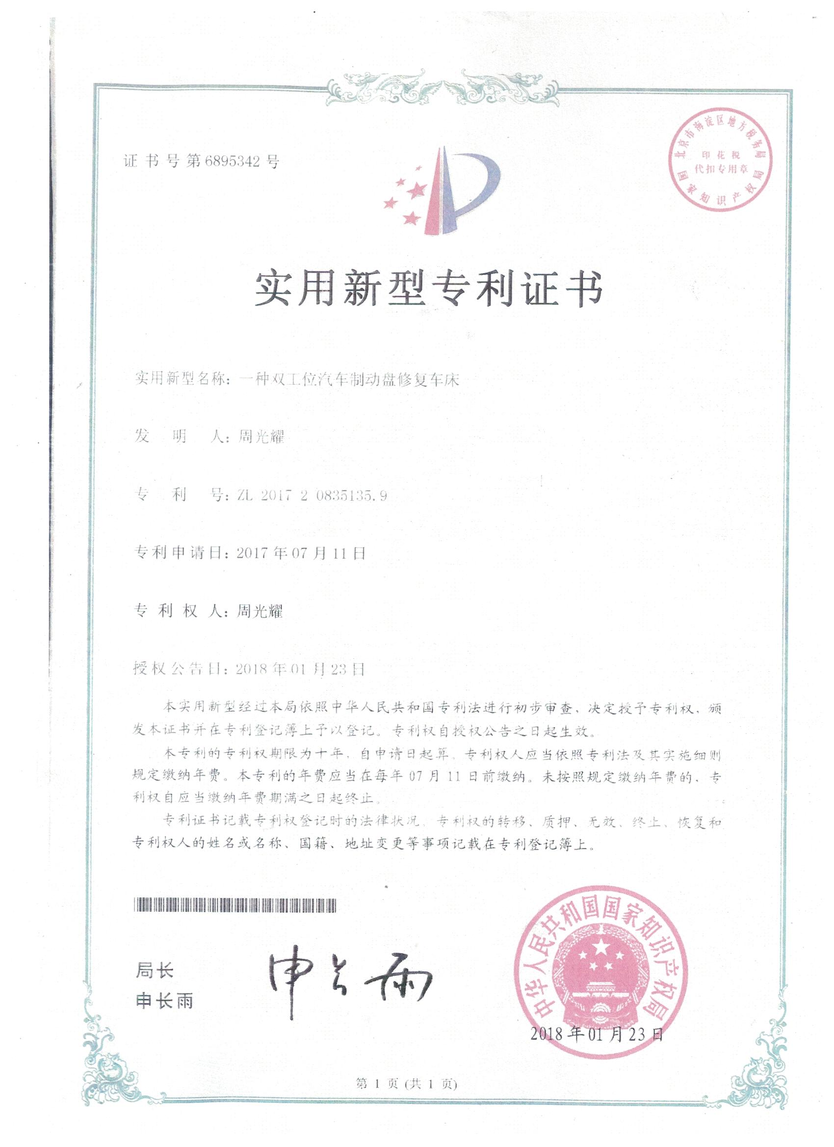 雙工位汽車制動(dòng)盤修復(fù)車床專利